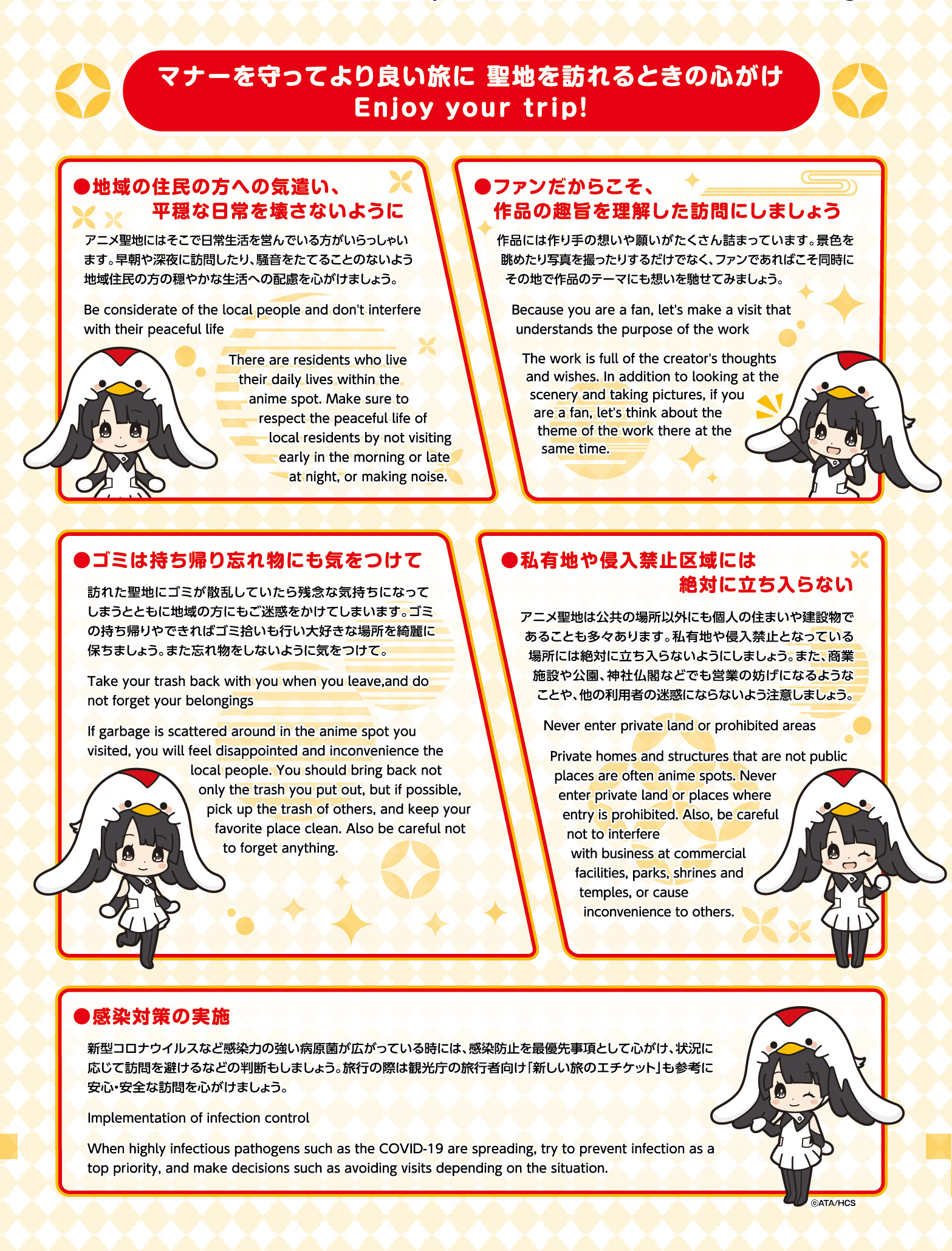 作品、ファンのみなさま、地域のみなさま、それぞれが笑顔でアニメ聖地の魅力を存分に楽しめますよう、引き続きご協力をよろしくお願いいたします。
