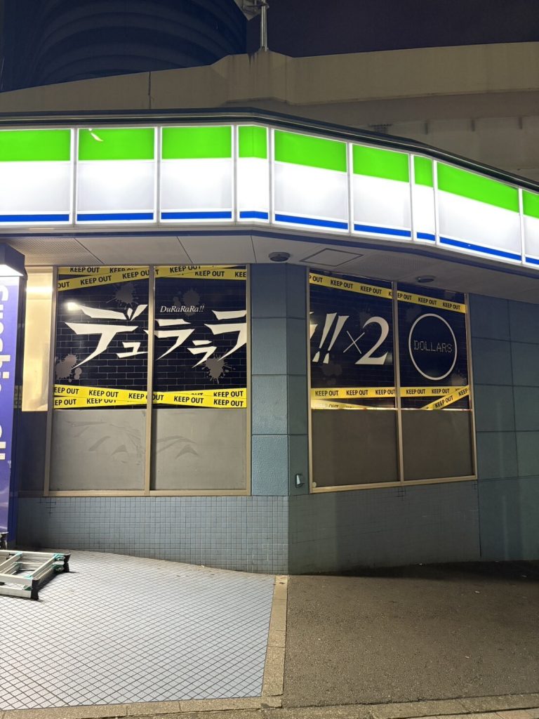 アニメ『デュラララ!!』は、東京都豊島区池袋の街並みが忠実に描かれている作品です。今回はアニメ2期のオープニングに登場をした「ファミリーマートサンシャイン西店」でアニメの世界観を再現したラッピングを実施いたします。